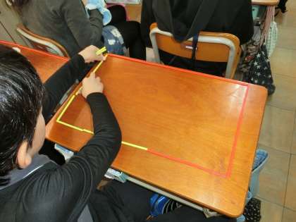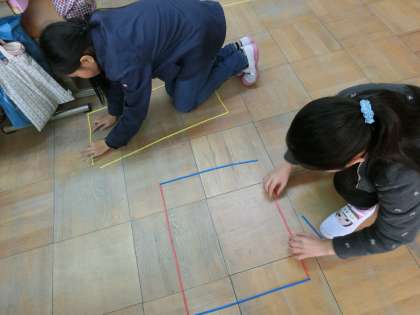 算数の学習では,「変わり方」の単元に入っています。今日は,18本の数え棒を使って,いろいろな長方形を作り,2つの量の関係を表にまとめていきました。自分たちでつくったそれぞれの長方形のたての本数と横の本数を組をかきだしているうちに,ともなって変わる量の関係に着目することができました。