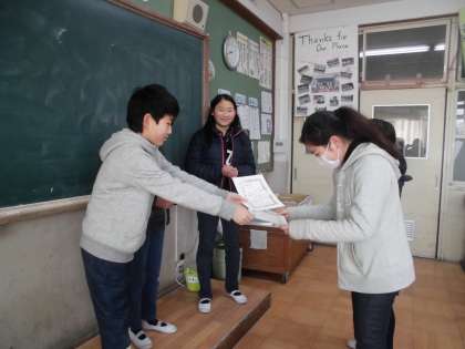 委員会のみなさんが,環境保護や,省エネなどに関する標語を作成したものの中から,優れた作品を選び表彰してくれました。