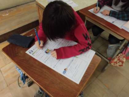 国語のテストをしました。漢字の音訓のテストです。漢字ドリルのテストもしました。みんな集中して取り組んでいました。
