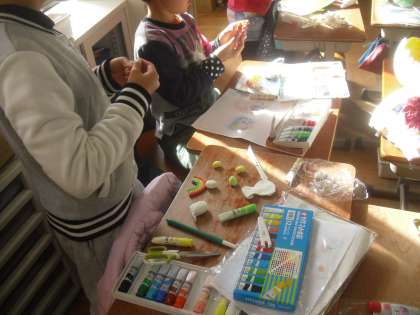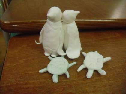 ぱっくりたまごに飾る人間や動物を粘土で作りました。