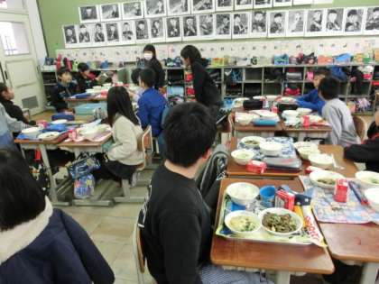 3,4,5年生の交流給食がありました。3年生は、5年生と、4年生は2年生と食べます。この時期に、給食週間が設定されています。給食に感謝しながら、みんなで給食をいただこうと企画されています。その昔、東北地方で2月に初めて給食が実施されました。今では、中学校でも実施されています。子供の貧困が言われている今、学校給食は重要な役割を担っています。学校給食で、しっかり栄養を取ってほしいものです。でも、1年生が入学してくると、いつも子供の偏食には驚かされます。アレルギーで食べられない食材もあり、子供たちも大変です。大人も、給食についてじっくり考えてみたいものです。