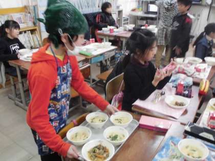 3年生と交流給食でいっしょに給食を食べました。2学年上のお兄ちゃん,お姉ちゃんとして準備から片付けまで責任をもってやり遂げました。心なしか表情がしっかりしているように見えました。