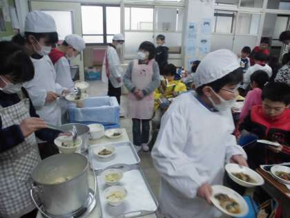 5年生と交流給食でした。5年生のみんなが給食当番をしてくれました。楽しい給食でした。