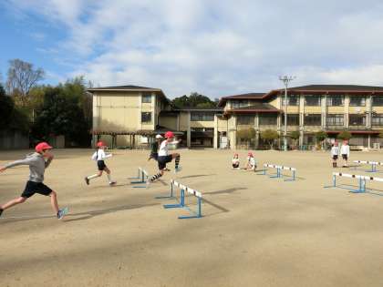 前回,オリエンテーションを行ったことを生かし,今日から本格的にハードル走が始まりました。「トーン!1・2・3」のリズムでインターバルを走る練習をしてから1回目のタイム計測を行いました。「初めてのハードル,思ってたよりも速く走れなかった。」「気を付けるポイントを意識して速く走れるようになりたいな。」と意欲たっぷりの子どもたちでした。