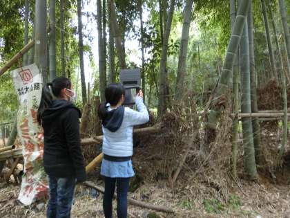 たくさん歩き,タブレット端末を使って写真を撮りました。