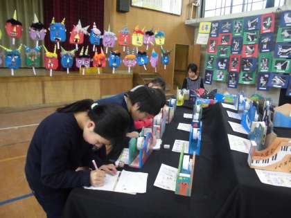造形展が始まりました。今日は鑑賞に行きました。いろんな学年の作品を鑑賞して、感想を書きました。とても素晴らしい作品ばかりです。