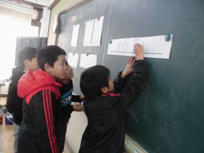 算数は小数の復習をしました。10分の1=0.1を確認してから学習しました。分数と小数の大きさ比べや小数のひっ算も頑張りました。