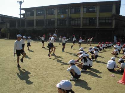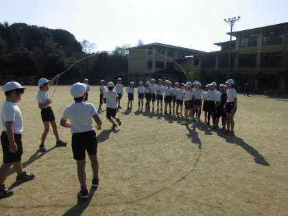 学活は「学年なわとび大会」を行いました。今まで練習してきた技を一生懸命披露しました。クラスの大縄跳びもみんなで声をかけ合って楽しく跳べました。