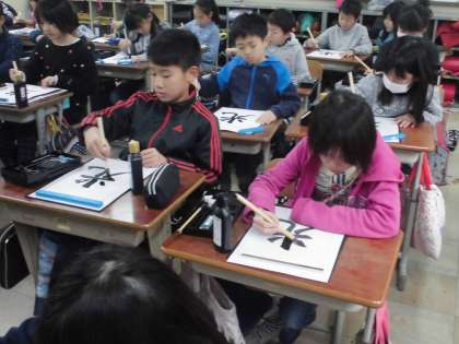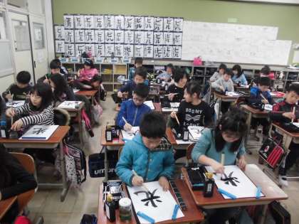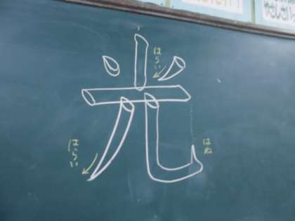 国語で書写をしました。今日は「光」を書きました。とめ、はね、はらいに気を付けて丁寧に書きました。