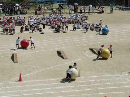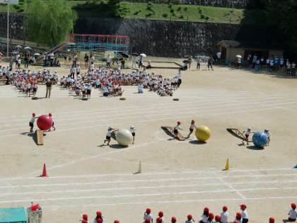 全校チャレンジ種目「ゲームリレー」の様子です。