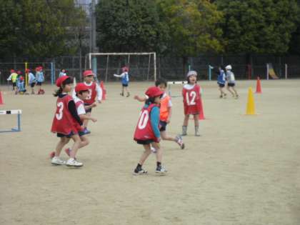 先週の金曜日は,雨の為,残念ながら出来なかったのですが,今日は何とか3時間目までは雨が降らずにできました。4時間目には,雨が降ってきたので,良かったです。今日は,前半と後半の間に作戦タイムをとりました。