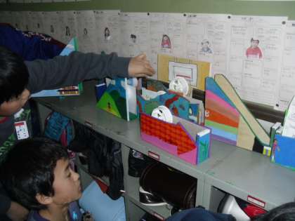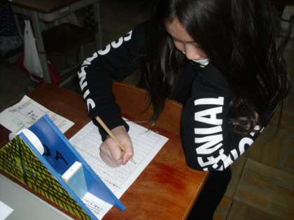 造形展に展示していた「テープカッター」を教室へ持ち帰り,鑑賞しました。電動のこぎりで板を切るときの工夫や,下絵のアイデア彩色,仕上がりなど・・・・。しっかり見て,感想を書いていました。一生使える世界にひとつだけの「テープカッター」になりましたね。