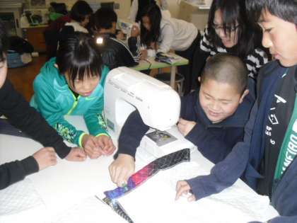 今日がナップザック製作の最後の時間でした。紐を通す部分をミシンで縫い,アイロンをあて,仕上げました。「早く使いたい!今日持って帰りたい!」という声が飛び交っていました。今週末には持って帰ります。