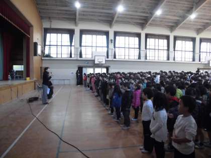 今日は音楽集会がありました。学習発表会で歌う「変わらないもの」を練習しました。強弱をつけて歌うことに注意して歌い歌いました。