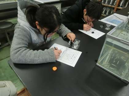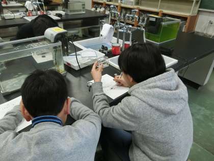 授業の初めはメダカのスケッチ。