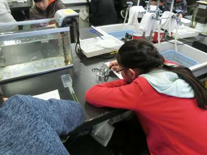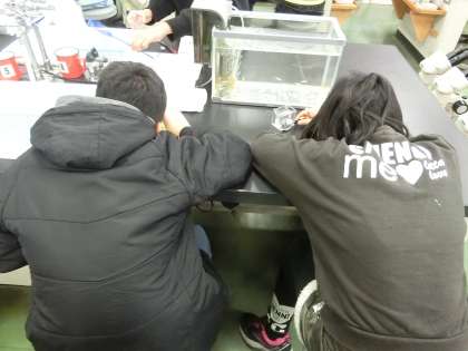 科学センターの先生からお腹のふくらみでもわかるとアドバイスをしてもらい,さらに目を凝らしてメダカを観察していました。
