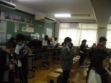 6年生を送る会で演奏する曲「ルパン3世」の合奏の練習をしました。指揮者を見て演奏することがなかなか難しいようです。本番まであと少し!練習を皆で全力で頑張りましょう!