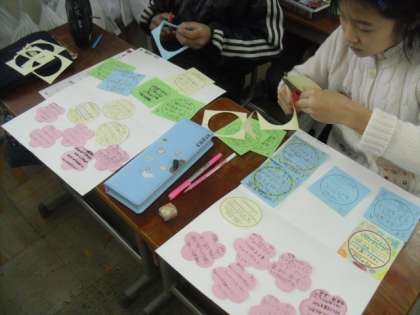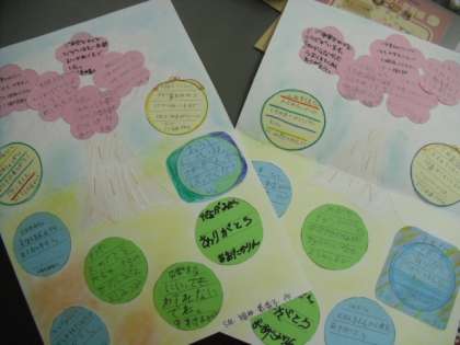1年生から5年生までのメッセージを1枚のカードにまとめました。貼り方や構成,絵も自分たちで工夫して完成させました。6年生が喜んでくれるといいですね。