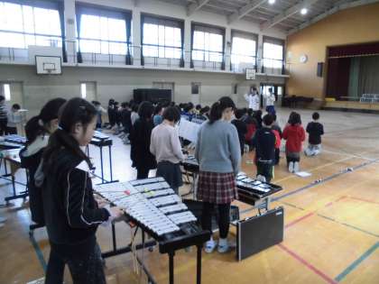 7日に行われる6年生を送る会に向けて,体育館で本番を想定した練習をしました。「ルパン三世」の合奏も練習を重ねるごとに上手になってきています。本番もこの調子でがんばりたいです!!