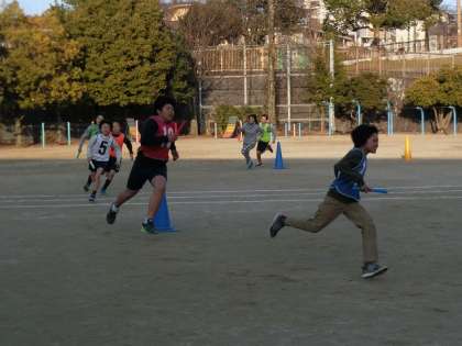 今日のランニング部は子ども達と先生とのお別れリレーを行いました。