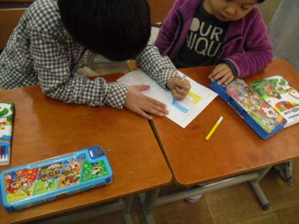 今日の学習は,広さくらべについて学習した後,方眼紙を使って「ばしょとりゲーム」をして,広さくらべをしました。隣同士で,なかよくゲームをすることができました。