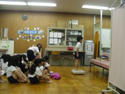 1年生最後の体重測定がありました。最初に測った5月9日に比べると,1〜3キロくらい増えていました。背も5センチくらい伸びている人もいます。みんな大きくなりましたね。