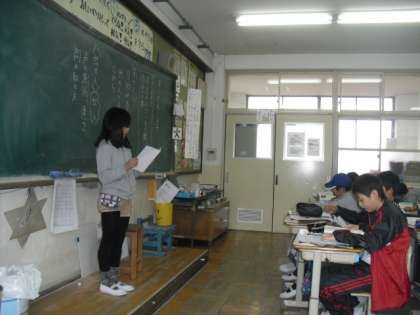 来年度,代表委員としてふさわしい人を1人選んで,推薦するスピーチ原稿を書き,それを元にスピーチしました。話し方に工夫をしたり,現行の内容に工夫を入れてスピーチしていました。