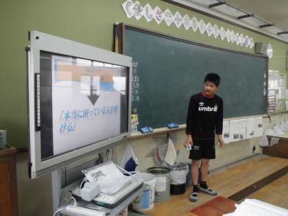 自分の将来の夢や目標についての発表をクラスでも行いました。友だちがどんな夢をもって,どんなことをがんばろうとしているのか,興味深く聞いていました。友だちの発表から学べることもたくさんあったように思います。