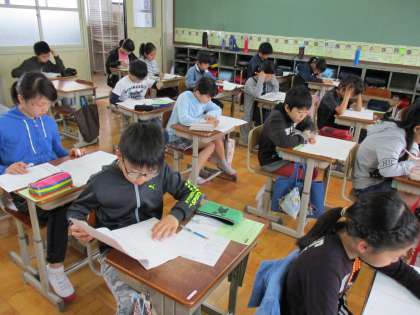 学力定着テストを行いました。1時間目から3時間目まで,かなり長時間にわたってのテストになりましたが,皆,真剣にそして集中してテストを受けていました。