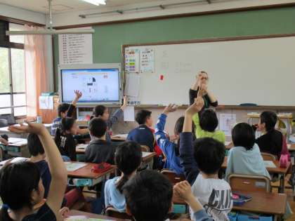 今日から「サラ先生」と楽しく学ぶ「外国語活動」の学習が始まりました。久しぶりの英語ということで,今日は「アルファベット」の復習からしました。やはりかなりの子どもが忘れていたようです。英語で簡単な自己紹介もしました。