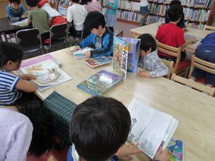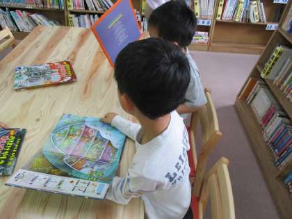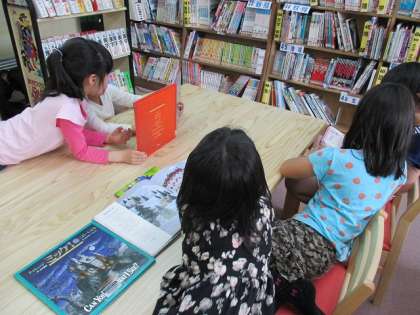 1つの本を子どもたちが何人か集まって読んでいる姿が見られました。