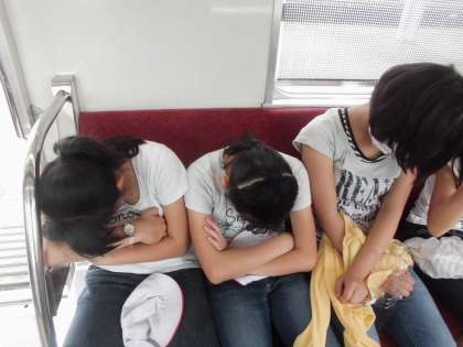 帰りの電車はこの通り・・・勉強も遊びもたくさん満喫した1日になりました。