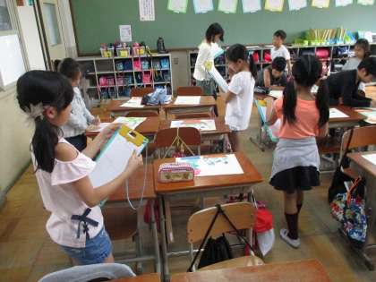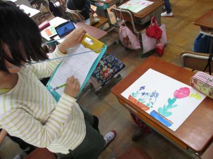 友達の描いた絵の良さを見つけていました。