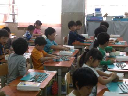 まずは,粘土をやわらかくなるようにこね,ひもの形を作り,それを使っていろいろな形を作っていきました。それぞれに工夫して良い作品ができました。