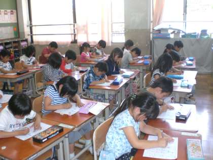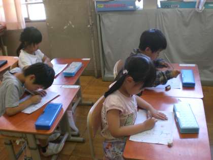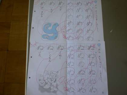 今日は,「よ」「ま」の学習でした。えんぴつの持ち方ももう一度確認しました。結びなど難しい字が出てきましたが,学校でも,宿題でも,ていねいに練習している子がたくさんいます。