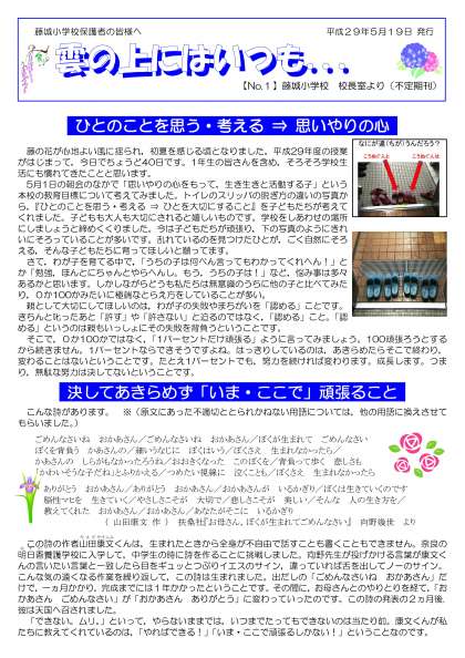 今年度,校長室からのおたより「雲の上にはいつも...」を不定期に発行してまいります。