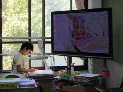 チームごとに地図を見せ合って,それを元にほかの子も地図に書き込んでいきました。