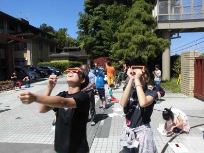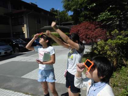 理科の「月と太陽」の学習で,月や太陽の高さを調べました。高さの測り方も学習し,外で意欲的に測定していました。