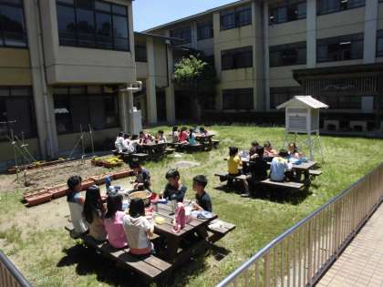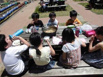無事に全グループがおいしいすき焼き風煮が完成しました!みんな笑顔で食べていました。協力して成し遂げた時の達成感は気持ちがいいよね。