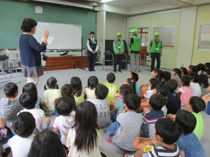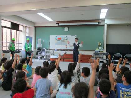 5時間目に,伏見警察署の方と,伏見地域交通安全活動推進委員協議会(地活)の4名の方々をゲストティーチャーとしてお招きし,交通安全についてのお話を聞きました。道路を歩くとき,信号を渡るときに気を付けることなどを教えてもらいました。横断歩道を渡るときの「右・左・後ろ」の確認をしっかり意識して,明日からも安全に登下校してほしいと思います。