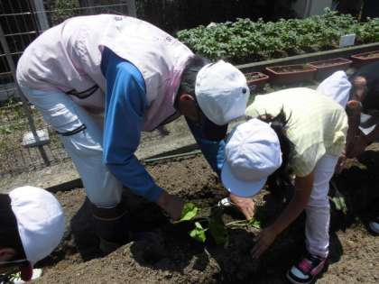 どのように苗を置くと根がはっていくのかを説明していただき,その通りにやろうとするのですが,子ども達にはなかなか難しかったようです。