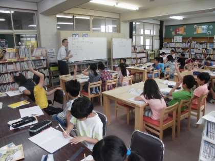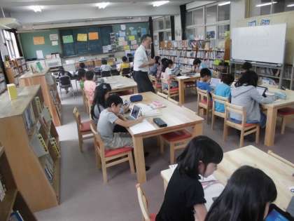 図書室でタブレットを使った授業をしました。自分たちで警察の仕事を調べていました。いつもとは違った授業の内容でみんな熱心に受けていました。