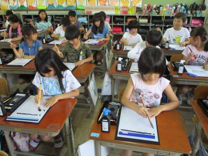 子どもたちは,習字道具を初めて使う子が多く,とても楽しみにしていました。