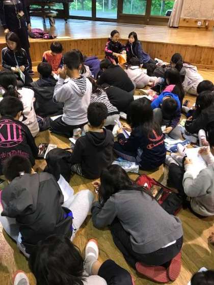 2日間を過ごして出た反省点を振り返り、廊下を走る、大きな声を出すなどの意見が出ました。