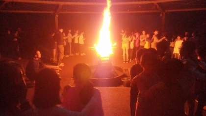 協力・友情・挑戦・笑顔の4つの火を授けられ、昨日のキャンプファイヤーはスタートしました。