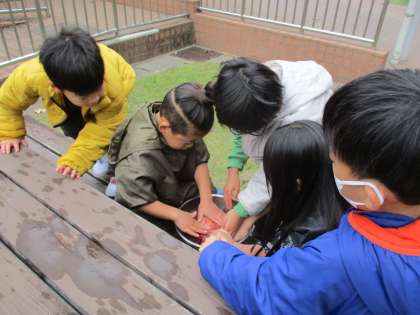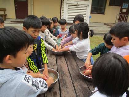 先日収穫したサツマイモを、2年生みんなで洗いました。子どもたちが「さむ〜い。」と言いながら水で丁寧に泥をとったのでサツマイモはピカピカになりました。