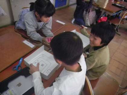 生活科で「ふじしろちびっこカーニバル」を計画しています。地域の幼稚園・保育園の年長さんを招待して、いっしょに楽しく遊べるように、秋のおもちゃ作りをしています。
