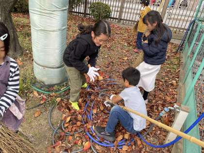 「集めた落ち葉が、未来に咲くお花の肥料になるよ」