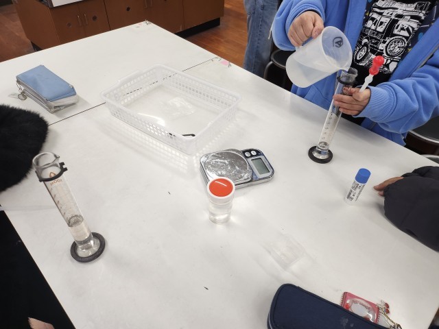 メスシリンダー、スポイトなどを使って検証です。