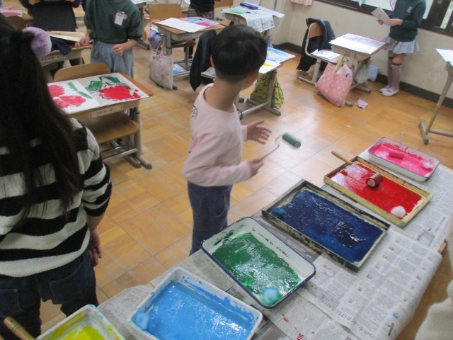 2月の造形展に向けて、海の生き物」をテーマに紙版を使って多色刷りに挑戦しました。